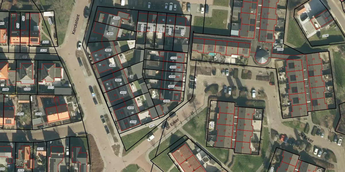 de Erker 24-D is gelegen op kadastraal perceel WKD00R3697. Deze kadastrale aanduiding is uniek en wordt gebruikt door het Kadaster om eigendomsrechten en andere zakelijke rechten vast te leggen. Het perceel maakt onderdeel uit van de kadastrale gemeente Werkendam.