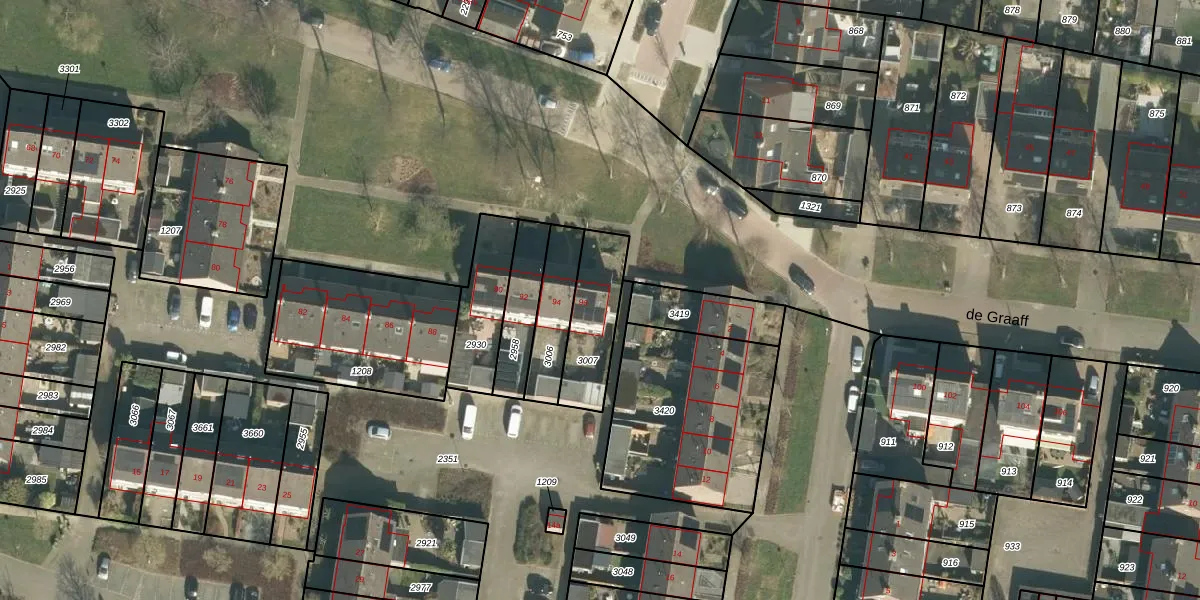 Het perceel waarop de Graaff 96 staat heeft een oppervlakte van 218 m². Dit is een middelgroot perceel. De perceeloppervlakte wordt geregistreerd door het Kadaster. Gedetailleerde informatie over de maten van dit perceel kunt u vinden in het rapport Kadastrale kaart met maatvoering van de Graaff 96.