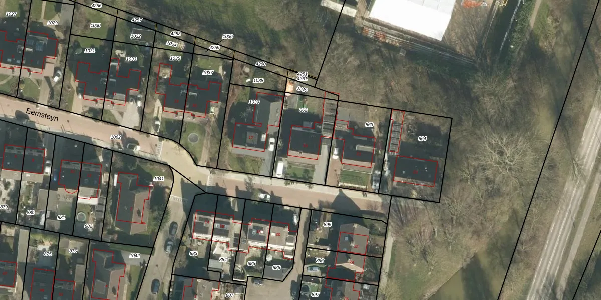 Het perceel waarop Eemsteyn 19 staat heeft een oppervlakte van 513 m². Dit is een groot perceel. De perceeloppervlakte wordt geregistreerd door het Kadaster. Gedetailleerde informatie over de maten van dit perceel kunt u vinden in het rapport Kadastrale kaart met maatvoering van Eemsteyn 19.