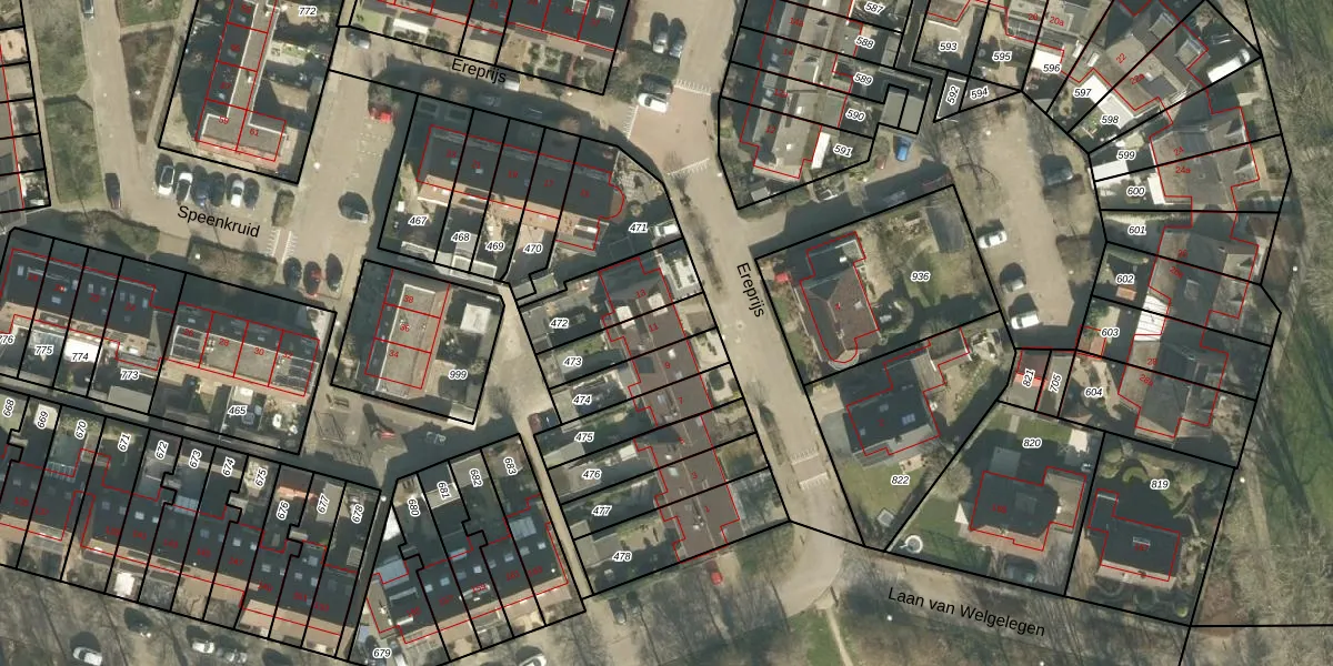 Ereprijs 11 is gelegen op kadastraal perceel WKD00P473. Deze kadastrale aanduiding is uniek en wordt gebruikt door het Kadaster om eigendomsrechten en andere zakelijke rechten vast te leggen. Het perceel maakt onderdeel uit van de kadastrale gemeente Werkendam.