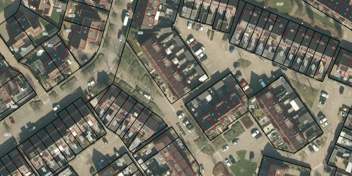 Het perceel waarop Ereprijs 118 staat heeft een oppervlakte van 1894 m². Dit is een zeer groot perceel. De perceeloppervlakte wordt geregistreerd door het Kadaster. Gedetailleerde informatie over de maten van dit perceel kunt u vinden in het rapport Kadastrale kaart met maatvoering van Ereprijs 118.