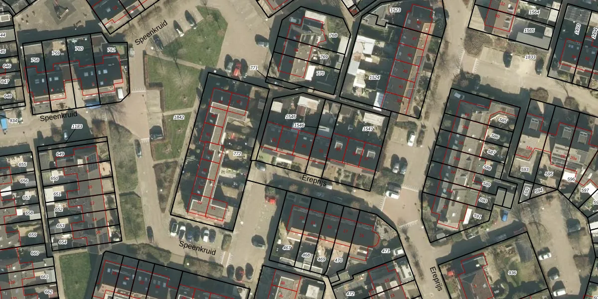 Het perceel waarop Ereprijs 29 staat heeft een oppervlakte van 418 m². Dit is een groot perceel. De perceeloppervlakte wordt geregistreerd door het Kadaster. Gedetailleerde informatie over de maten van dit perceel kunt u vinden in het rapport Kadastrale kaart met maatvoering van Ereprijs 29.