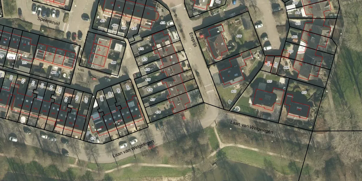 Het perceel waarop Ereprijs 3 staat heeft een oppervlakte van 176 m². Dit is een middelgroot perceel. De perceeloppervlakte wordt geregistreerd door het Kadaster. Gedetailleerde informatie over de maten van dit perceel kunt u vinden in het rapport Kadastrale kaart met maatvoering van Ereprijs 3.