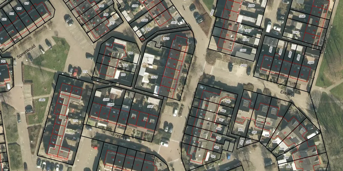 Het perceel waarop Ereprijs 41 staat heeft een oppervlakte van 780 m². Dit is een groot perceel. De perceeloppervlakte wordt geregistreerd door het Kadaster. Gedetailleerde informatie over de maten van dit perceel kunt u vinden in het rapport Kadastrale kaart met maatvoering van Ereprijs 41.