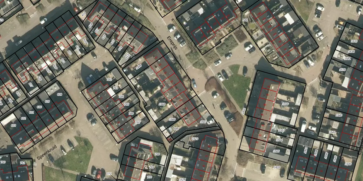 Het perceel waarop Ereprijs 57 staat heeft een oppervlakte van 779 m². Dit is een groot perceel. De perceeloppervlakte wordt geregistreerd door het Kadaster. Gedetailleerde informatie over de maten van dit perceel kunt u vinden in het rapport Kadastrale kaart met maatvoering van Ereprijs 57.