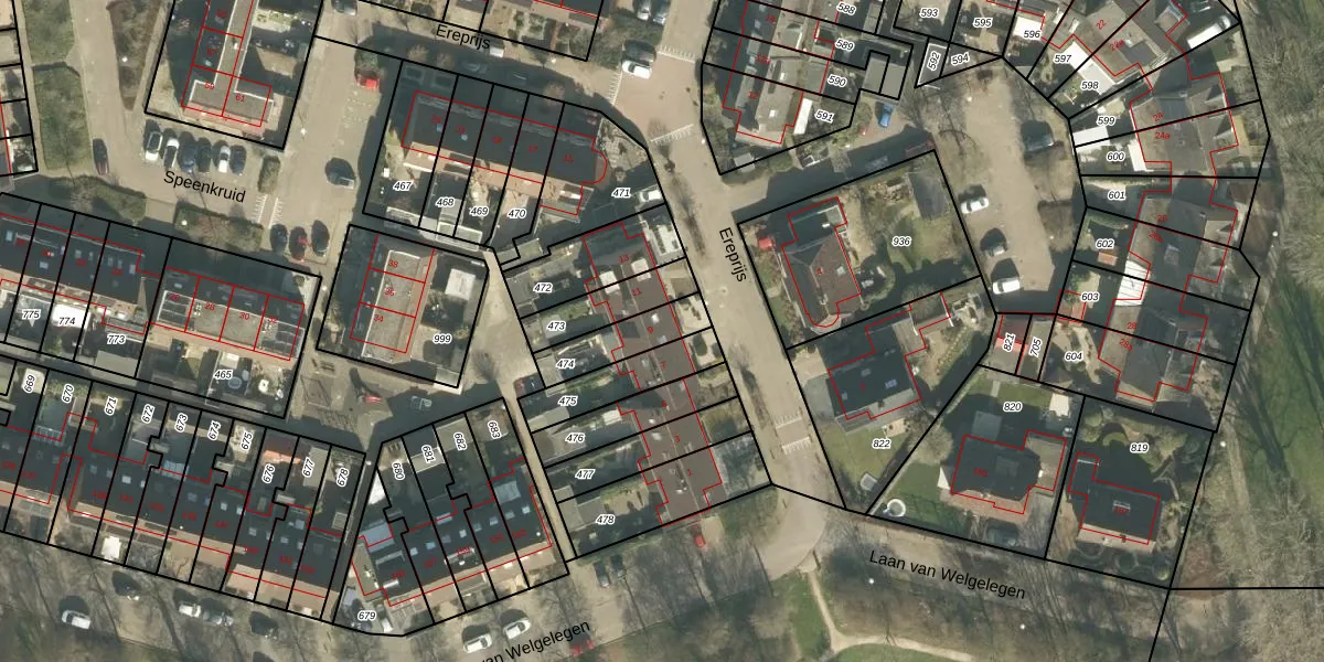 Het perceel waarop Ereprijs 9 staat heeft een oppervlakte van 151 m². Dit is een middelgroot perceel. De perceeloppervlakte wordt geregistreerd door het Kadaster. Gedetailleerde informatie over de maten van dit perceel kunt u vinden in het rapport Kadastrale kaart met maatvoering van Ereprijs 9.