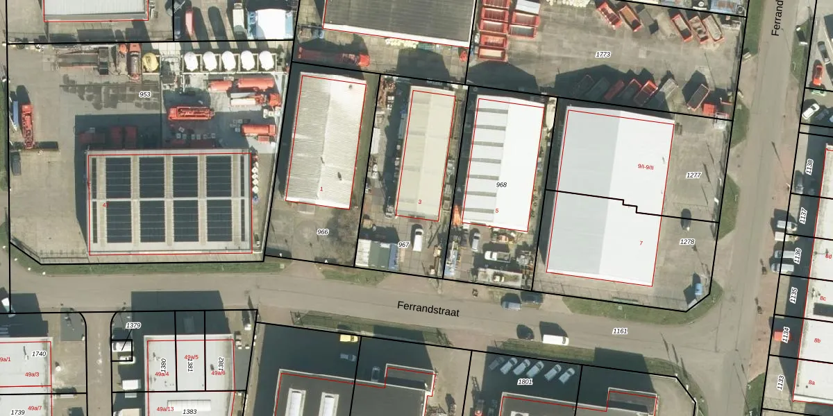 Het perceel waarop Ferrandstraat 3 staat heeft een oppervlakte van 1010 m². Dit is een zeer groot perceel. De perceeloppervlakte wordt geregistreerd door het Kadaster. Gedetailleerde informatie over de maten van dit perceel kunt u vinden in het rapport Kadastrale kaart met maatvoering van Ferrandstraat 3.
