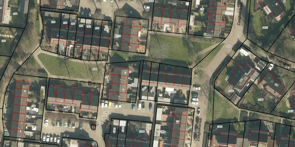Gebruik de zoekbalk of klik op een perceel voor informatie over de adressen binnen dit perceel.