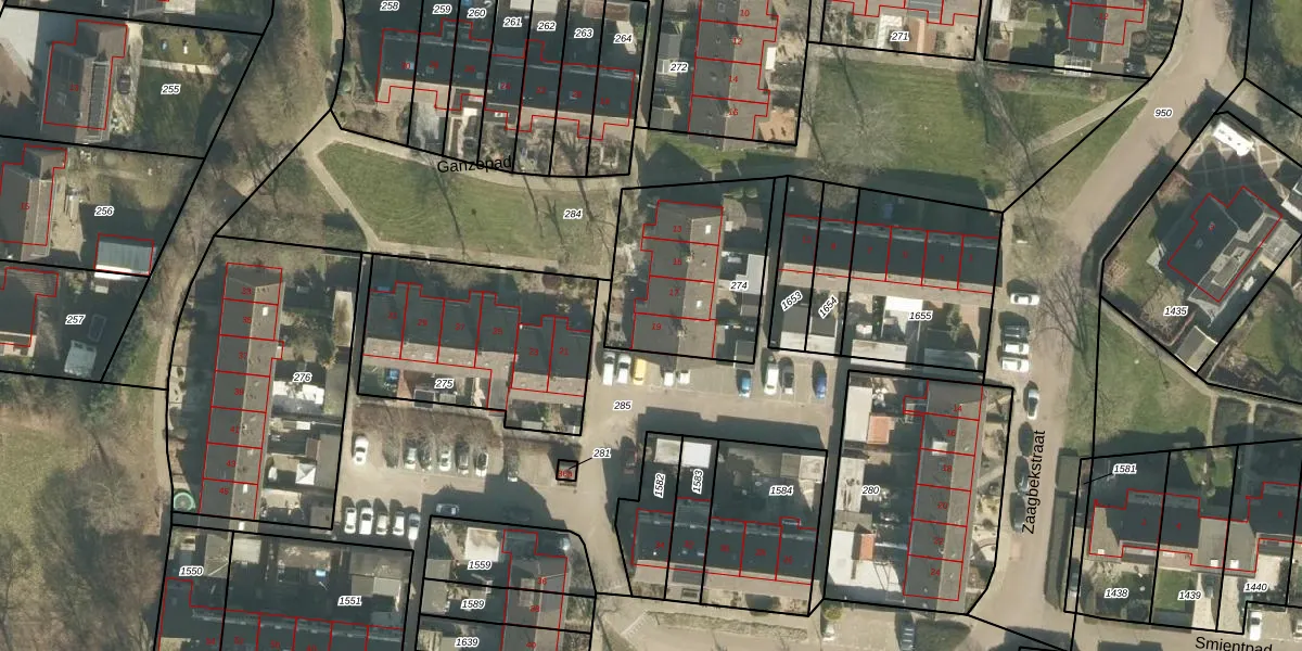 Het perceel waarop Ganzepad 19 staat heeft een oppervlakte van 615 m². Dit is een groot perceel. De perceeloppervlakte wordt geregistreerd door het Kadaster. Gedetailleerde informatie over de maten van dit perceel kunt u vinden in het rapport Kadastrale kaart met maatvoering van Ganzepad 19.