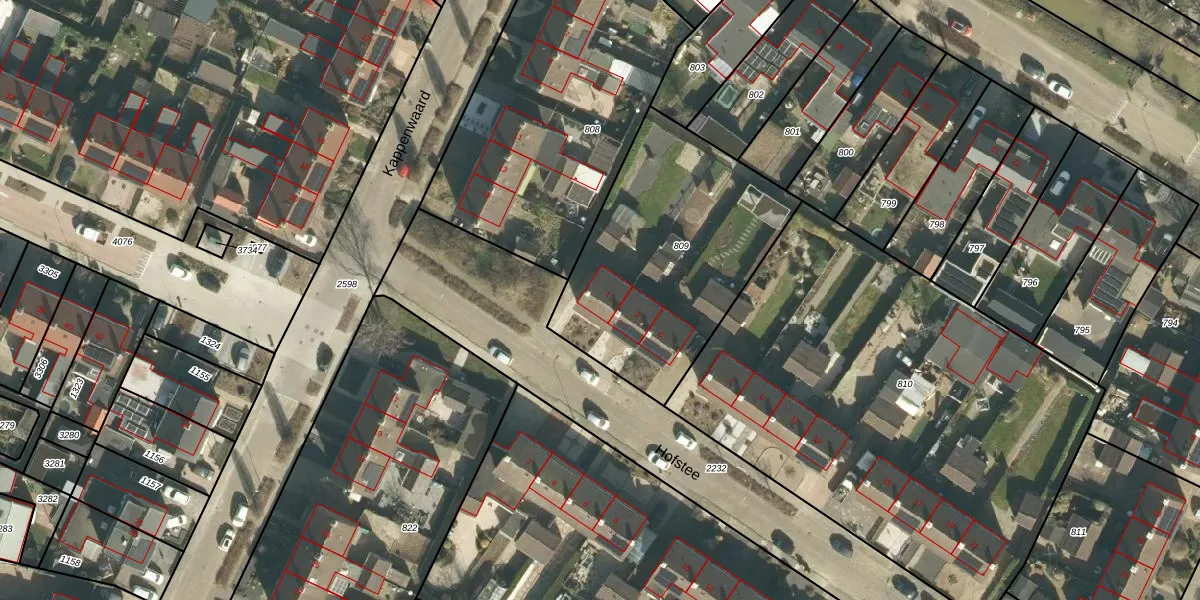 Het perceel waarop Hofstee 1 staat heeft een oppervlakte van 1088 m². Dit is een zeer groot perceel. De perceeloppervlakte wordt geregistreerd door het Kadaster. Gedetailleerde informatie over de maten van dit perceel kunt u vinden in het rapport Kadastrale kaart met maatvoering van Hofstee 1.