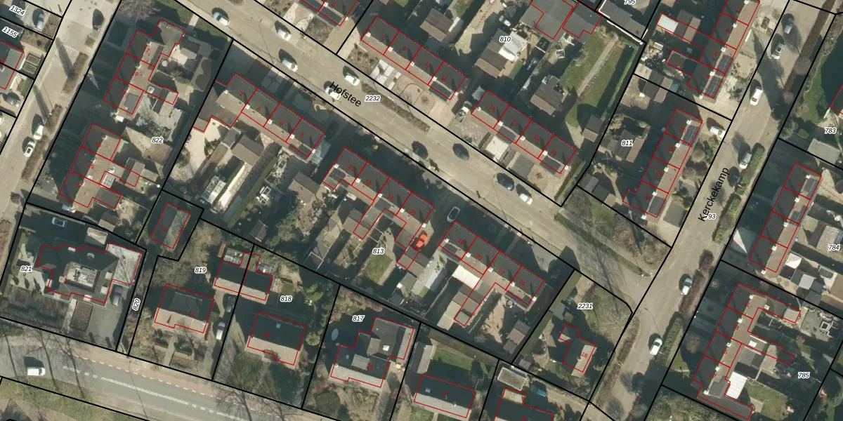 Het perceel waarop Hofstee 16 staat heeft een oppervlakte van 3233 m². Dit is een zeer groot perceel. De perceeloppervlakte wordt geregistreerd door het Kadaster. Gedetailleerde informatie over de maten van dit perceel kunt u vinden in het rapport Kadastrale kaart met maatvoering van Hofstee 16.