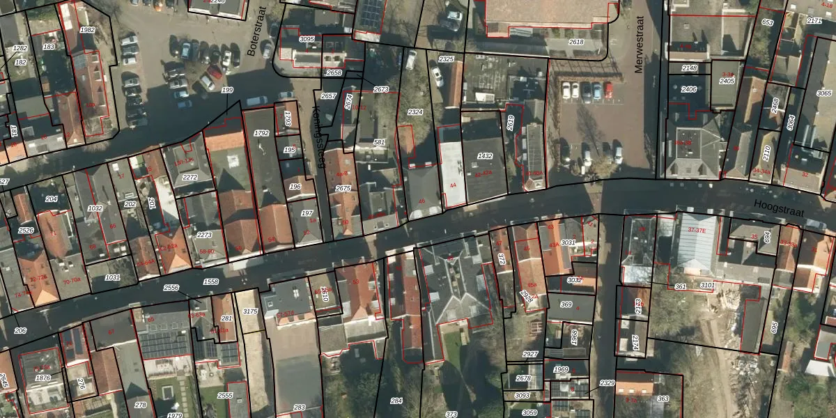 Het perceel waarop Hoogstraat 46 staat heeft een oppervlakte van 326 m². Dit is een groot perceel. De perceeloppervlakte wordt geregistreerd door het Kadaster. Gedetailleerde informatie over de maten van dit perceel kunt u vinden in het rapport Kadastrale kaart met maatvoering van Hoogstraat 46.
