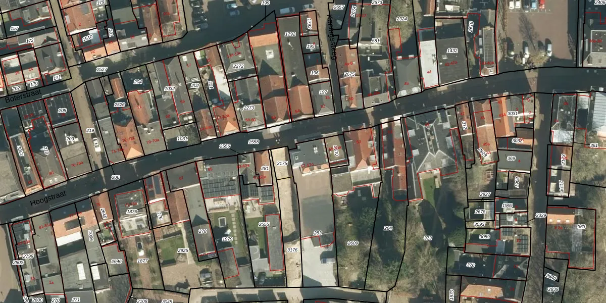 Het perceel waarop Hoogstraat 57-b staat heeft een oppervlakte van 565 m². Dit is een groot perceel. De perceeloppervlakte wordt geregistreerd door het Kadaster. Gedetailleerde informatie over de maten van dit perceel kunt u vinden in het rapport Kadastrale kaart met maatvoering van Hoogstraat 57-b.