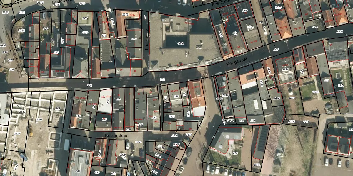 Het perceel waarop Hoogstraat 89 staat heeft een oppervlakte van 129 m². Dit is een middelgroot perceel. De perceeloppervlakte wordt geregistreerd door het Kadaster. Gedetailleerde informatie over de maten van dit perceel kunt u vinden in het rapport Kadastrale kaart met maatvoering van Hoogstraat 89.