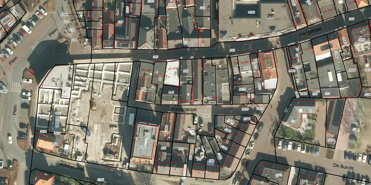 Het perceel waarop Hoogstraat 99 staat heeft een oppervlakte van 168 m². Dit is een middelgroot perceel. De perceeloppervlakte wordt geregistreerd door het Kadaster. Gedetailleerde informatie over de maten van dit perceel kunt u vinden in het rapport Kadastrale kaart met maatvoering van Hoogstraat 99.