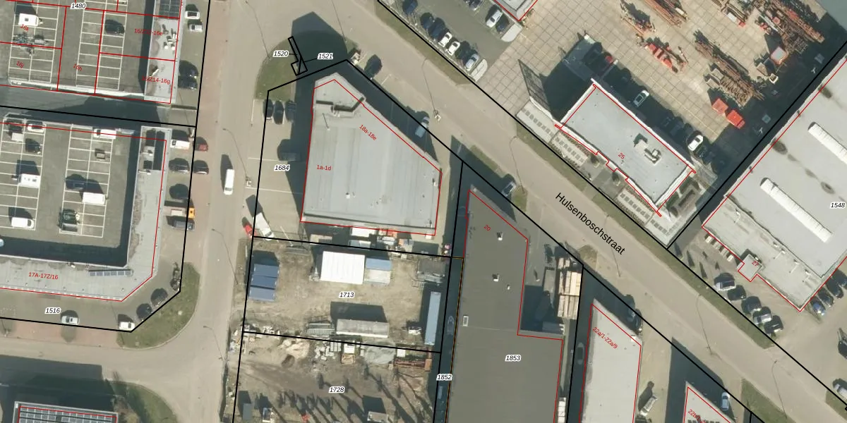 Het perceel waarop Hulsenboschstraat 18-e staat heeft een oppervlakte van 1680 m². Dit is een zeer groot perceel. De perceeloppervlakte wordt geregistreerd door het Kadaster. Gedetailleerde informatie over de maten van dit perceel kunt u vinden in het rapport Kadastrale kaart met maatvoering van Hulsenboschstraat 18-e.
