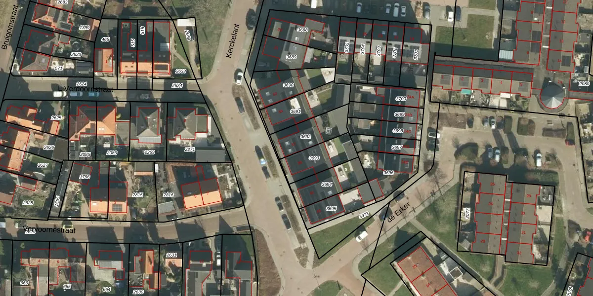 Kerckelant 37 is gelegen op kadastraal perceel WKD00R3692. Deze kadastrale aanduiding is uniek en wordt gebruikt door het Kadaster om eigendomsrechten en andere zakelijke rechten vast te leggen. Het perceel maakt onderdeel uit van de kadastrale gemeente Werkendam.
