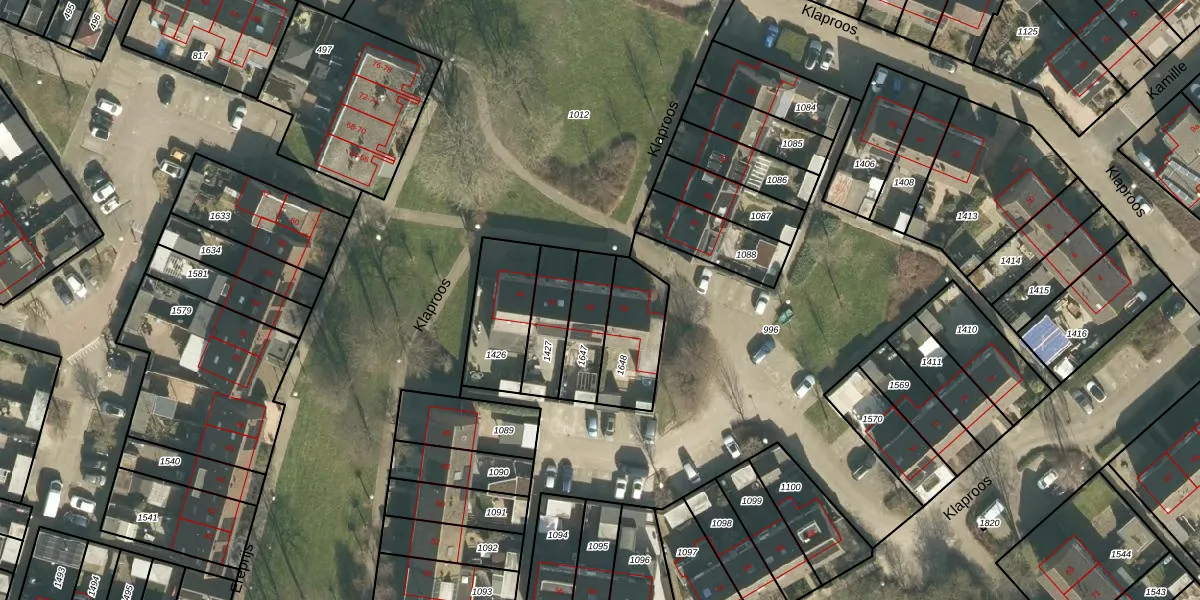 Gebruik de zoekbalk of klik op een perceel voor informatie over de adressen binnen dit perceel.