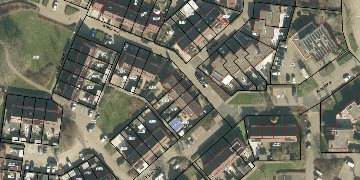 Gebruik de zoekbalk of klik op een perceel voor informatie over de adressen binnen dit perceel.