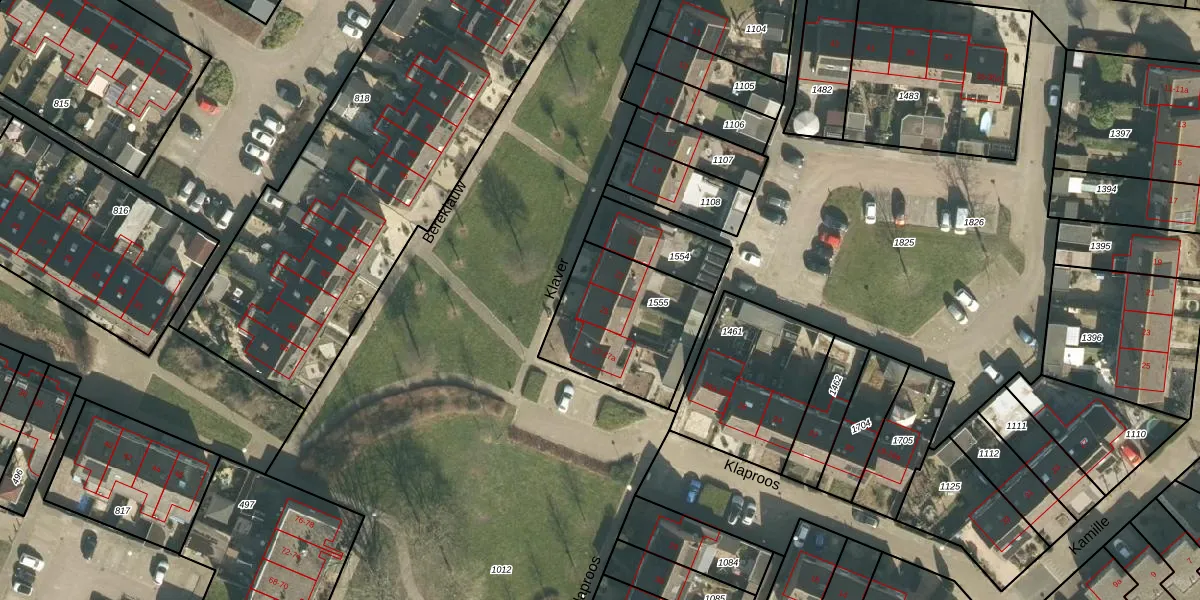 Het perceel waarop Klaver 25 staat heeft een oppervlakte van 487 m². Dit is een groot perceel. De perceeloppervlakte wordt geregistreerd door het Kadaster. Gedetailleerde informatie over de maten van dit perceel kunt u vinden in het rapport Kadastrale kaart met maatvoering van Klaver 25.
