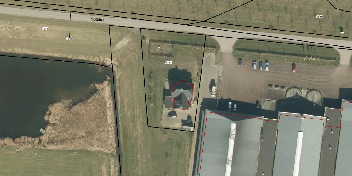 Het perceel waarop Kooike 2 staat heeft een oppervlakte van 1760 m². Dit is een zeer groot perceel. De perceeloppervlakte wordt geregistreerd door het Kadaster. Gedetailleerde informatie over de maten van dit perceel kunt u vinden in het rapport Kadastrale kaart met maatvoering van Kooike 2.