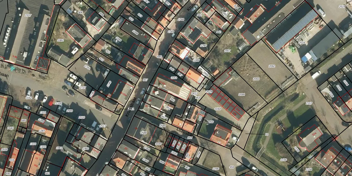 Het perceel waarop Kruisstraat 32-A staat heeft een oppervlakte van 348 m². Dit is een groot perceel. De perceeloppervlakte wordt geregistreerd door het Kadaster. Gedetailleerde informatie over de maten van dit perceel kunt u vinden in het rapport Kadastrale kaart met maatvoering van Kruisstraat 32-A.