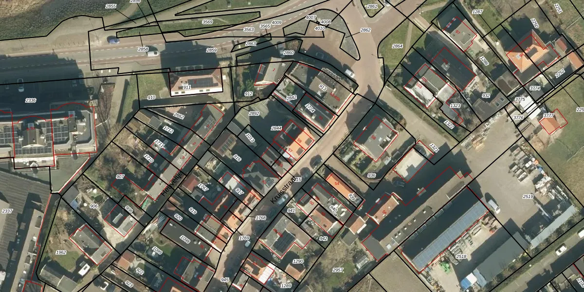 Het perceel waarop Kruisstraat 57 staat heeft een oppervlakte van 355 m². Dit is een groot perceel. De perceeloppervlakte wordt geregistreerd door het Kadaster. Gedetailleerde informatie over de maten van dit perceel kunt u vinden in het rapport Kadastrale kaart met maatvoering van Kruisstraat 57.