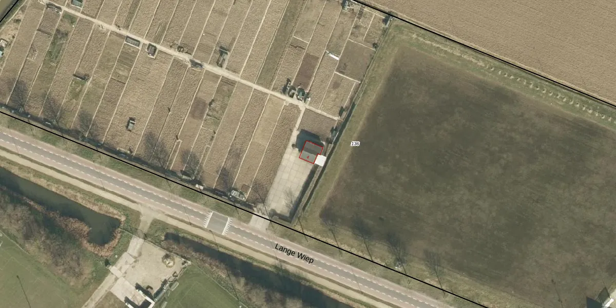 Lange Wiep 4 is gelegen op kadastraal perceel WKD00R136. Deze kadastrale aanduiding is uniek en wordt gebruikt door het Kadaster om eigendomsrechten en andere zakelijke rechten vast te leggen. Het perceel maakt onderdeel uit van de kadastrale gemeente Werkendam.
