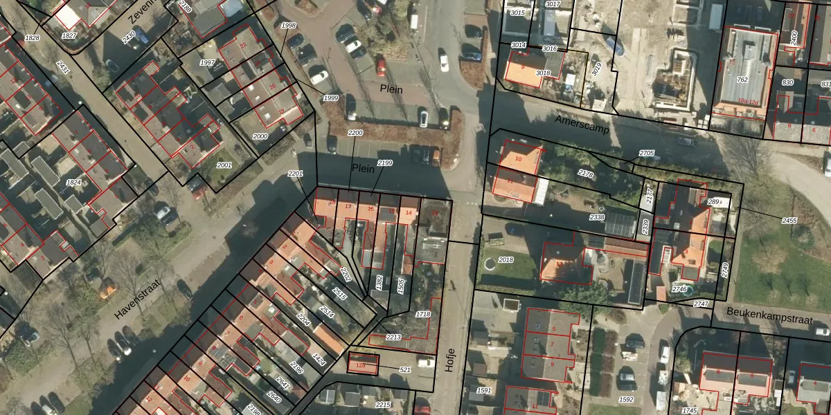 Het perceel waarop Plein 14 staat heeft een oppervlakte van 143 m². Dit is een middelgroot perceel. De perceeloppervlakte wordt geregistreerd door het Kadaster. Gedetailleerde informatie over de maten van dit perceel kunt u vinden in het rapport Kadastrale kaart met maatvoering van Plein 14.