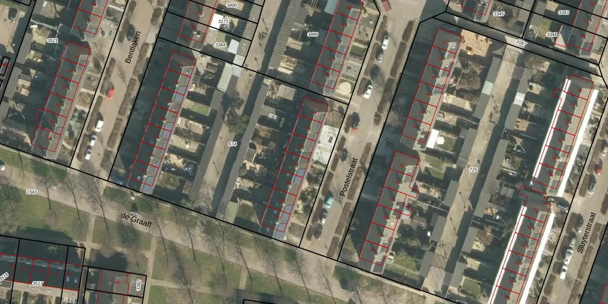 Het perceel waarop Postelstraat 52 staat heeft een oppervlakte van 3281 m². Dit is een zeer groot perceel. De perceeloppervlakte wordt geregistreerd door het Kadaster. Gedetailleerde informatie over de maten van dit perceel kunt u vinden in het rapport Kadastrale kaart met maatvoering van Postelstraat 52.