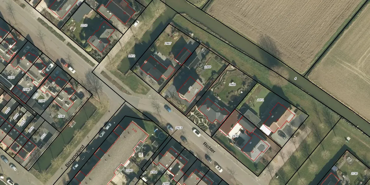 Richter 19 is gelegen op kadastraal perceel WKD00R2468. Deze kadastrale aanduiding is uniek en wordt gebruikt door het Kadaster om eigendomsrechten en andere zakelijke rechten vast te leggen. Het perceel maakt onderdeel uit van de kadastrale gemeente Werkendam.