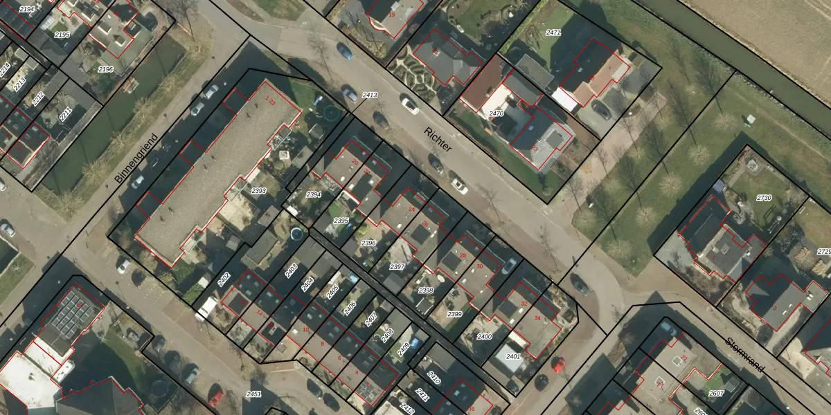Richter 24 is gelegen op kadastraal perceel WKD00R2396. Deze kadastrale aanduiding is uniek en wordt gebruikt door het Kadaster om eigendomsrechten en andere zakelijke rechten vast te leggen. Het perceel maakt onderdeel uit van de kadastrale gemeente Werkendam.