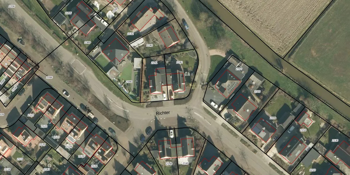 Het perceel waarop Richter 3 staat heeft een oppervlakte van 437 m². Dit is een groot perceel. De perceeloppervlakte wordt geregistreerd door het Kadaster. Gedetailleerde informatie over de maten van dit perceel kunt u vinden in het rapport Kadastrale kaart met maatvoering van Richter 3.