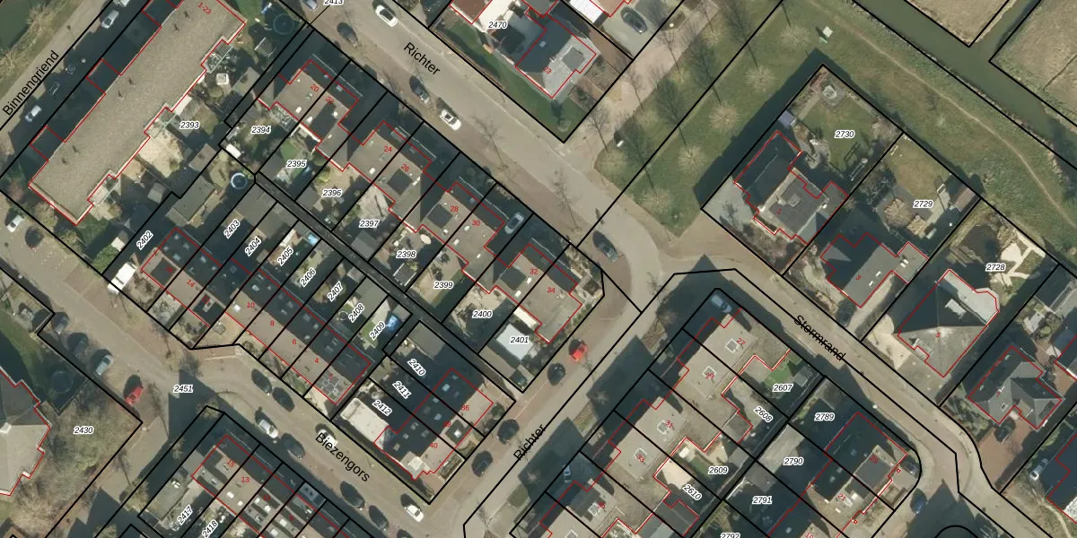 Richter 32 is gelegen op kadastraal perceel WKD00R2400. Deze kadastrale aanduiding is uniek en wordt gebruikt door het Kadaster om eigendomsrechten en andere zakelijke rechten vast te leggen. Het perceel maakt onderdeel uit van de kadastrale gemeente Werkendam.