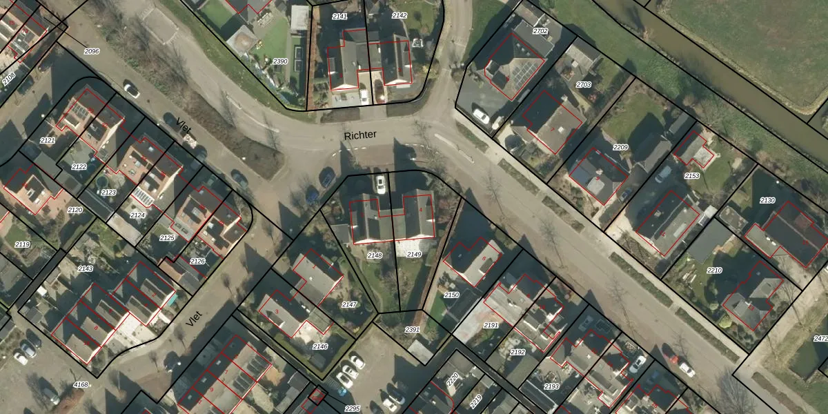 Het perceel waarop Richter 4 staat heeft een oppervlakte van 395 m². Dit is een groot perceel. De perceeloppervlakte wordt geregistreerd door het Kadaster. Gedetailleerde informatie over de maten van dit perceel kunt u vinden in het rapport Kadastrale kaart met maatvoering van Richter 4.