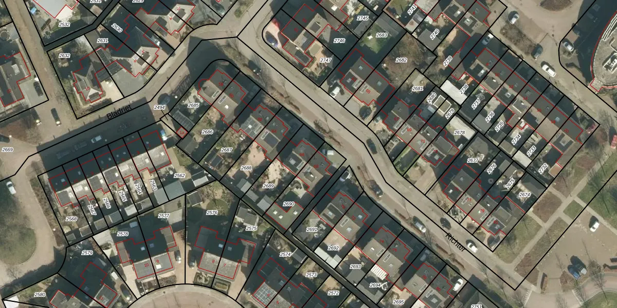 Het perceel waarop Richter 66 staat heeft een oppervlakte van 285 m². Dit is een middelgroot perceel. De perceeloppervlakte wordt geregistreerd door het Kadaster. Gedetailleerde informatie over de maten van dit perceel kunt u vinden in het rapport Kadastrale kaart met maatvoering van Richter 66.