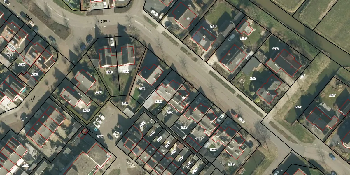 Het perceel waarop Richter 8 staat heeft een oppervlakte van 281 m². Dit is een middelgroot perceel. De perceeloppervlakte wordt geregistreerd door het Kadaster. Gedetailleerde informatie over de maten van dit perceel kunt u vinden in het rapport Kadastrale kaart met maatvoering van Richter 8.