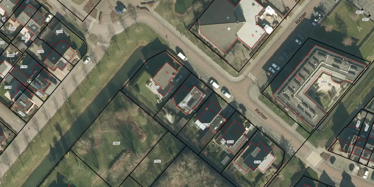 Het perceel waarop Richter 84 staat heeft een oppervlakte van 494 m². Dit is een groot perceel. De perceeloppervlakte wordt geregistreerd door het Kadaster. Gedetailleerde informatie over de maten van dit perceel kunt u vinden in het rapport Kadastrale kaart met maatvoering van Richter 84.