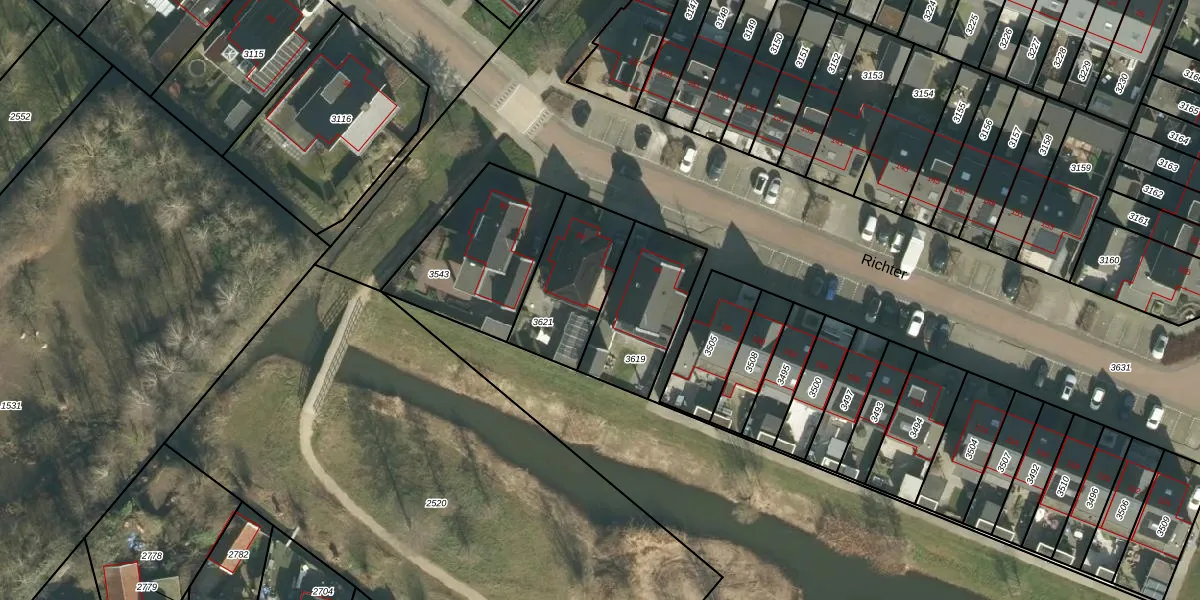 Het perceel waarop Richter 94 staat heeft een oppervlakte van 335 m². Dit is een groot perceel. De perceeloppervlakte wordt geregistreerd door het Kadaster. Gedetailleerde informatie over de maten van dit perceel kunt u vinden in het rapport Kadastrale kaart met maatvoering van Richter 94.