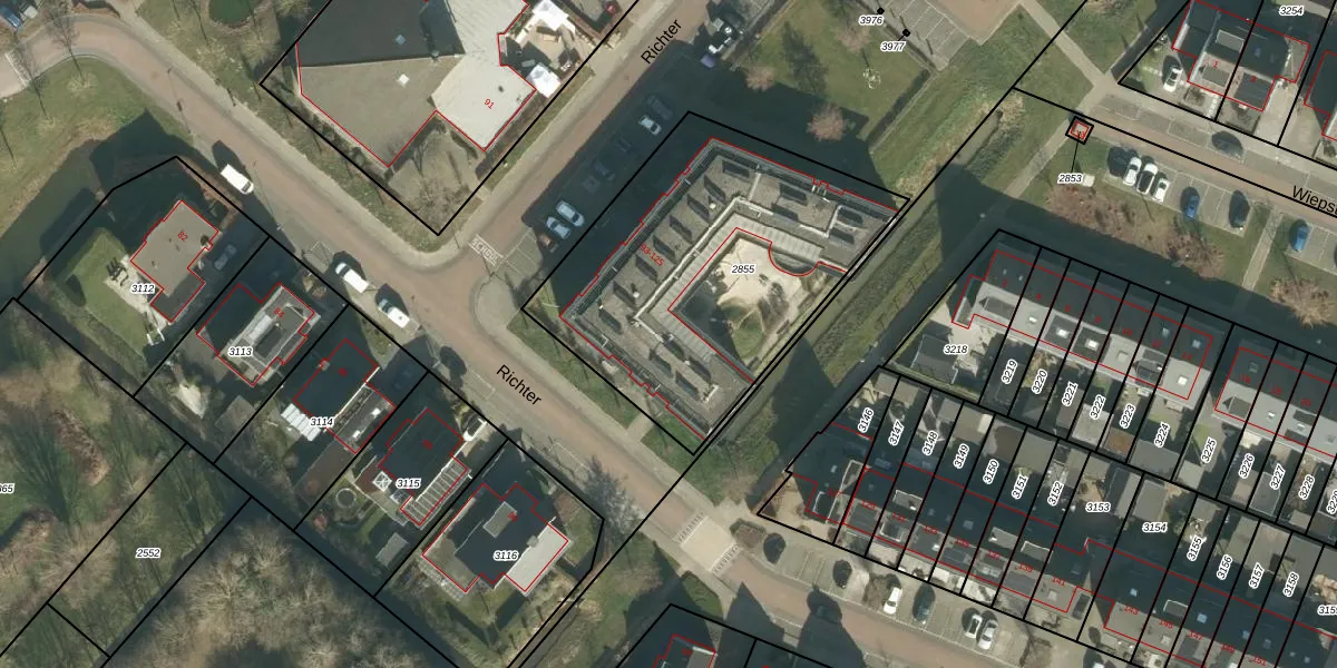 Het perceel waarop Richter 97 staat heeft een oppervlakte van 1495 m². Dit is een zeer groot perceel. De perceeloppervlakte wordt geregistreerd door het Kadaster. Gedetailleerde informatie over de maten van dit perceel kunt u vinden in het rapport Kadastrale kaart met maatvoering van Richter 97.