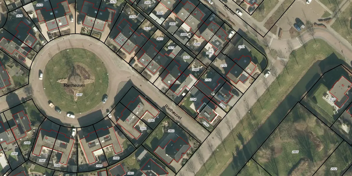 Het perceel waarop Rietheuvel 1 staat heeft een oppervlakte van 253 m². Dit is een middelgroot perceel. De perceeloppervlakte wordt geregistreerd door het Kadaster. Gedetailleerde informatie over de maten van dit perceel kunt u vinden in het rapport Kadastrale kaart met maatvoering van Rietheuvel 1.