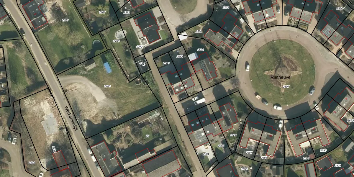 Rietheuvel 15 is gelegen op kadastraal perceel WKD00R2583. Deze kadastrale aanduiding is uniek en wordt gebruikt door het Kadaster om eigendomsrechten en andere zakelijke rechten vast te leggen. Het perceel maakt onderdeel uit van de kadastrale gemeente Werkendam.