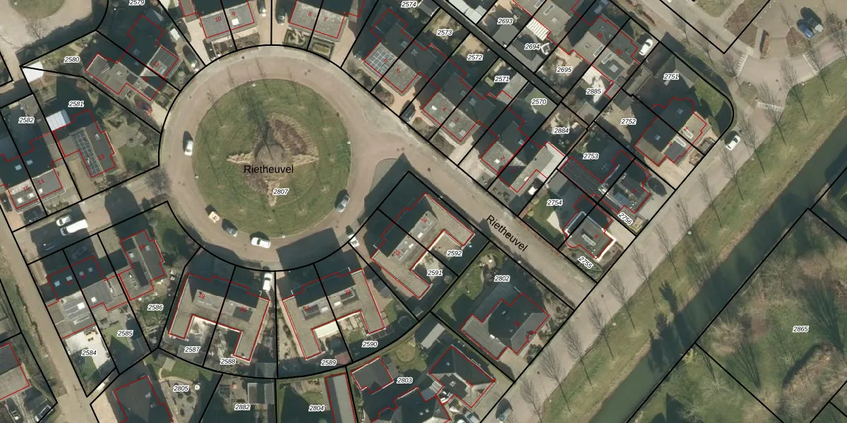 Het perceel waarop Rietheuvel 24 staat heeft een oppervlakte van 287 m². Dit is een middelgroot perceel. De perceeloppervlakte wordt geregistreerd door het Kadaster. Gedetailleerde informatie over de maten van dit perceel kunt u vinden in het rapport Kadastrale kaart met maatvoering van Rietheuvel 24.