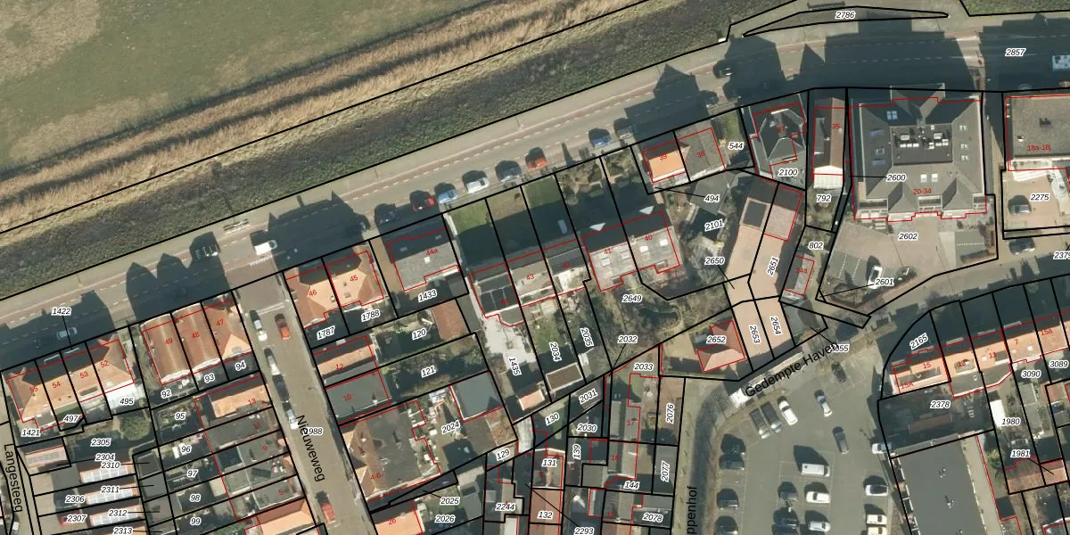 Gebruik de zoekbalk of klik op een perceel voor informatie over de adressen binnen dit perceel.
