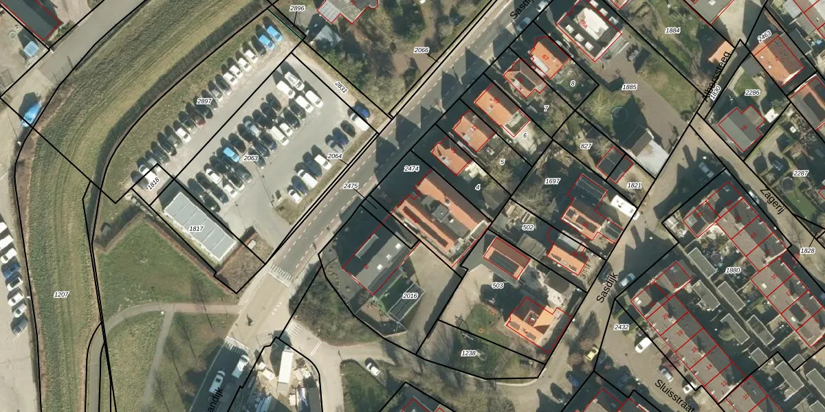 Het perceel waarop Sasdijk 77-a staat heeft een oppervlakte van 416 m². Dit is een groot perceel. De perceeloppervlakte wordt geregistreerd door het Kadaster. Gedetailleerde informatie over de maten van dit perceel kunt u vinden in het rapport Kadastrale kaart met maatvoering van Sasdijk 77-a.