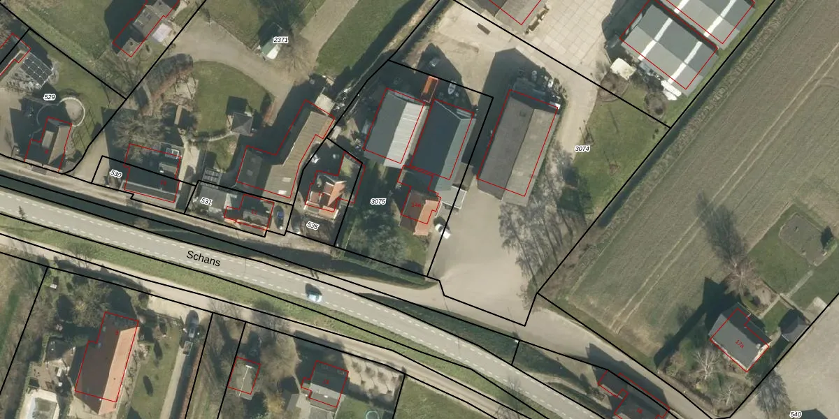 Het perceel waarop Schans 14-a staat heeft een oppervlakte van 1260 m². Dit is een zeer groot perceel. De perceeloppervlakte wordt geregistreerd door het Kadaster. Gedetailleerde informatie over de maten van dit perceel kunt u vinden in het rapport Kadastrale kaart met maatvoering van Schans 14-a.