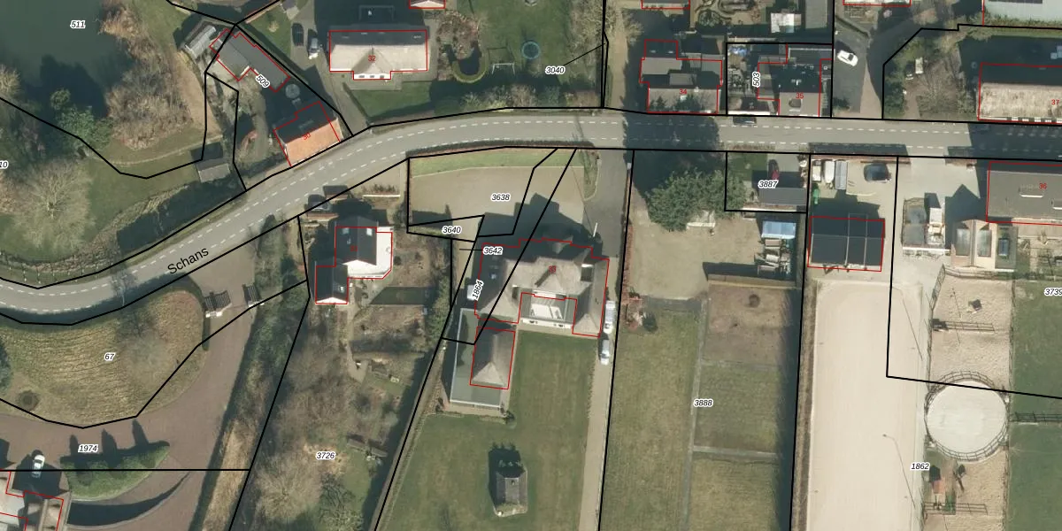 Het perceel waarop Schans 33 staat heeft een oppervlakte van 3300 m². Dit is een zeer groot perceel. De perceeloppervlakte wordt geregistreerd door het Kadaster. Gedetailleerde informatie over de maten van dit perceel kunt u vinden in het rapport Kadastrale kaart met maatvoering van Schans 33.