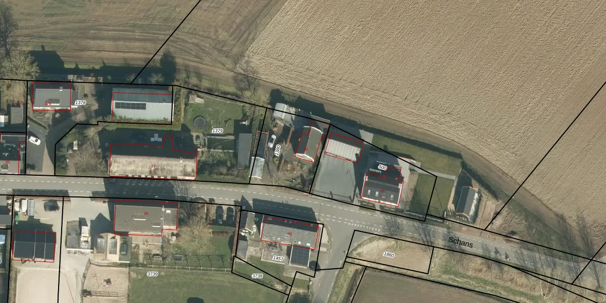 Het perceel waarop Schans 38 staat heeft een oppervlakte van 523 m². Dit is een groot perceel. De perceeloppervlakte wordt geregistreerd door het Kadaster. Gedetailleerde informatie over de maten van dit perceel kunt u vinden in het rapport Kadastrale kaart met maatvoering van Schans 38.