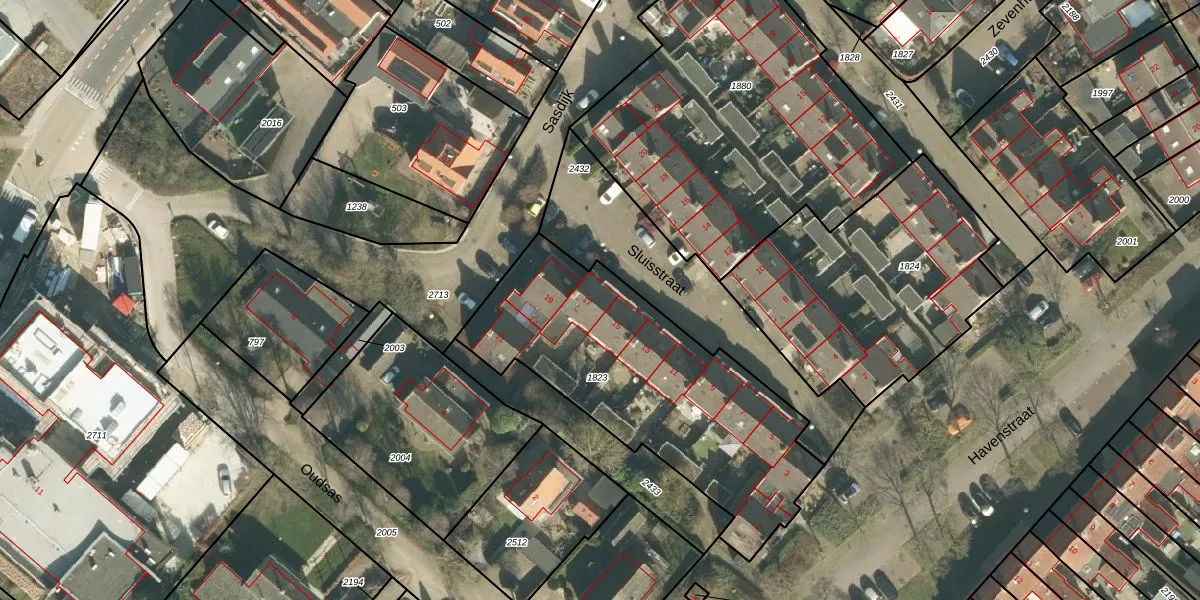 Het perceel waarop Sluisstraat 17 staat heeft een oppervlakte van 1296 m². Dit is een zeer groot perceel. De perceeloppervlakte wordt geregistreerd door het Kadaster. Gedetailleerde informatie over de maten van dit perceel kunt u vinden in het rapport Kadastrale kaart met maatvoering van Sluisstraat 17.