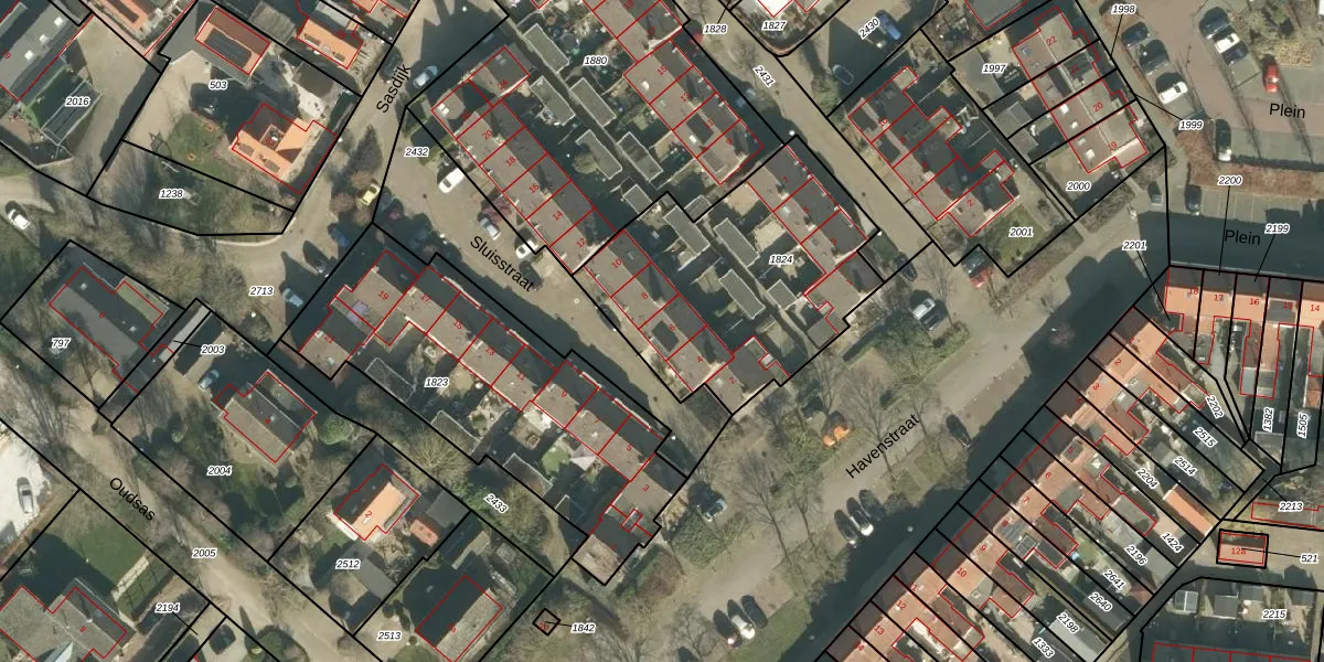 Het perceel waarop Sluisstraat 6 staat heeft een oppervlakte van 1101 m². Dit is een zeer groot perceel. De perceeloppervlakte wordt geregistreerd door het Kadaster. Gedetailleerde informatie over de maten van dit perceel kunt u vinden in het rapport Kadastrale kaart met maatvoering van Sluisstraat 6.